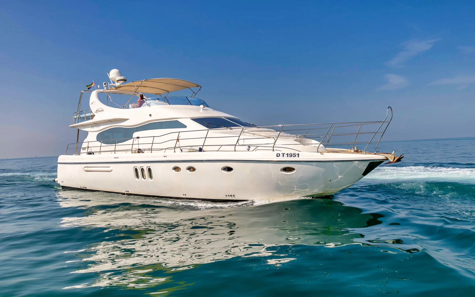 • Decks: Main Deck + Flybridge + Front Sunbed Area