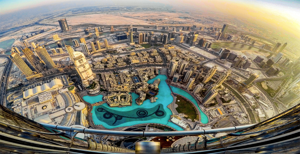 At 219.5 meters above Dubai, the Sky Views observatory features a stunning 25m-long glass floor at the cantilevered enjoying exceptional views of the Burj Khalifa, the city, visitors can also admire through a panoramic elevator with glass on 3 sides, and the Panorama 52 restaurant.